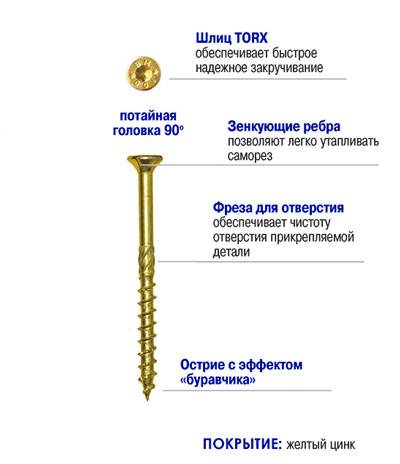 Они имеют специальную резьбу и часто покрытие, устойчивое к влаге и перепадам температур. Предназначены для крепления ПВХ-профилей и деревянных рам без растрескивания. Например, шурупы для оконных рам.